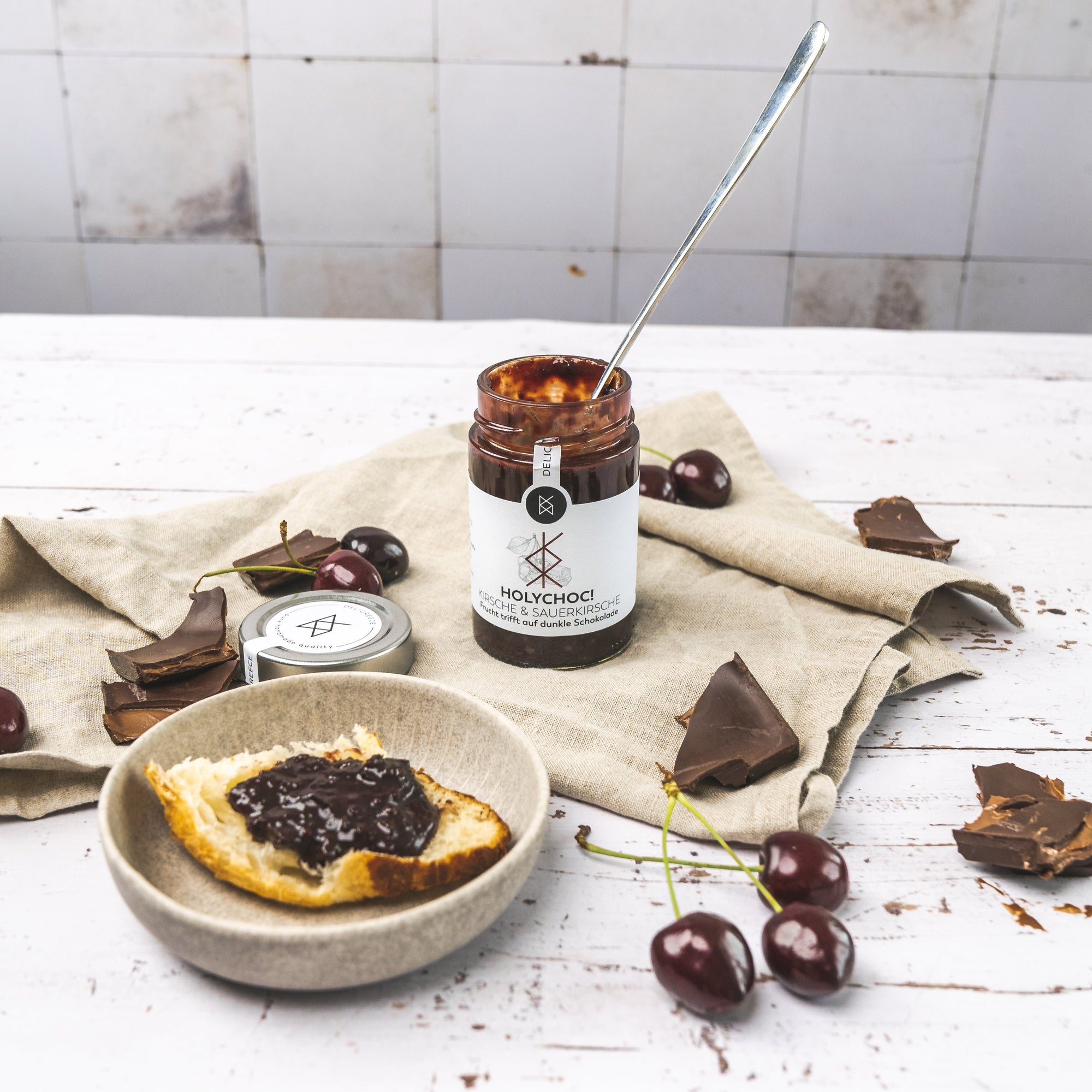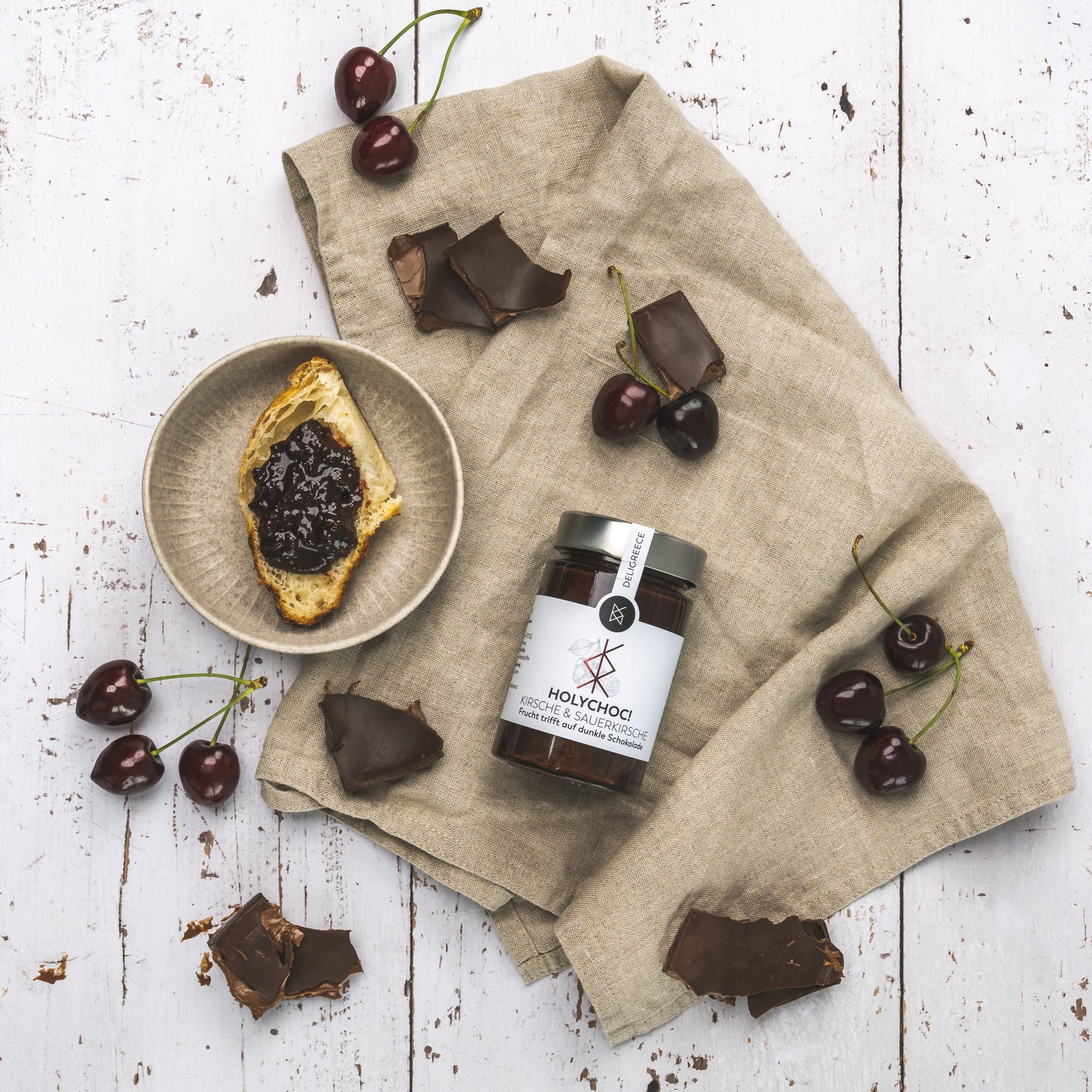 Oh, HOLYCHOC! Das Beste an unserer neuen Schokocrème: Du musst dich nicht entscheiden. Schnapp dir einfach alle Geschmacksrichtungen: Mandarine, Kirsche & Sauerkirsche, Orange oder Kastanie
